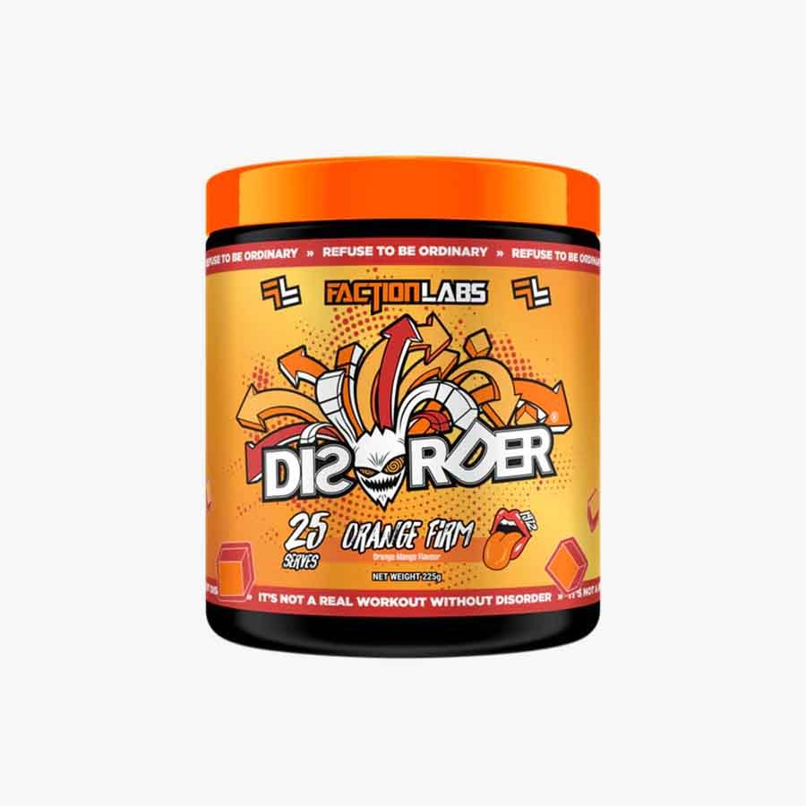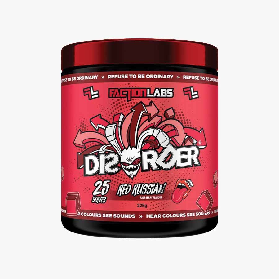 Disorder Pre‑Workout is a high-stimulant pre-workout designed for explosive energy, intense focus, endurance, and skin-splitting pumps. Available in bold flavours: Red Russian, Orange Firm, Green Haze.