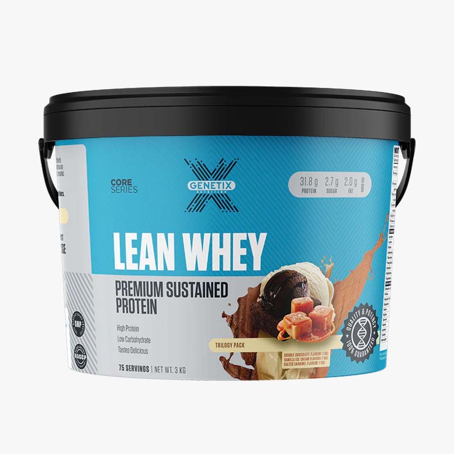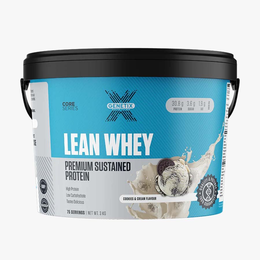 Genetix Lean Whey uses 3 individual proteins with their own amino acid profile and varying digestive rates to feed muscles for hours with the most complete protein available. Each serve has a whopping 32.1g of protein, 2.1g of carbohydrate and only 0.6g of fat per serving.