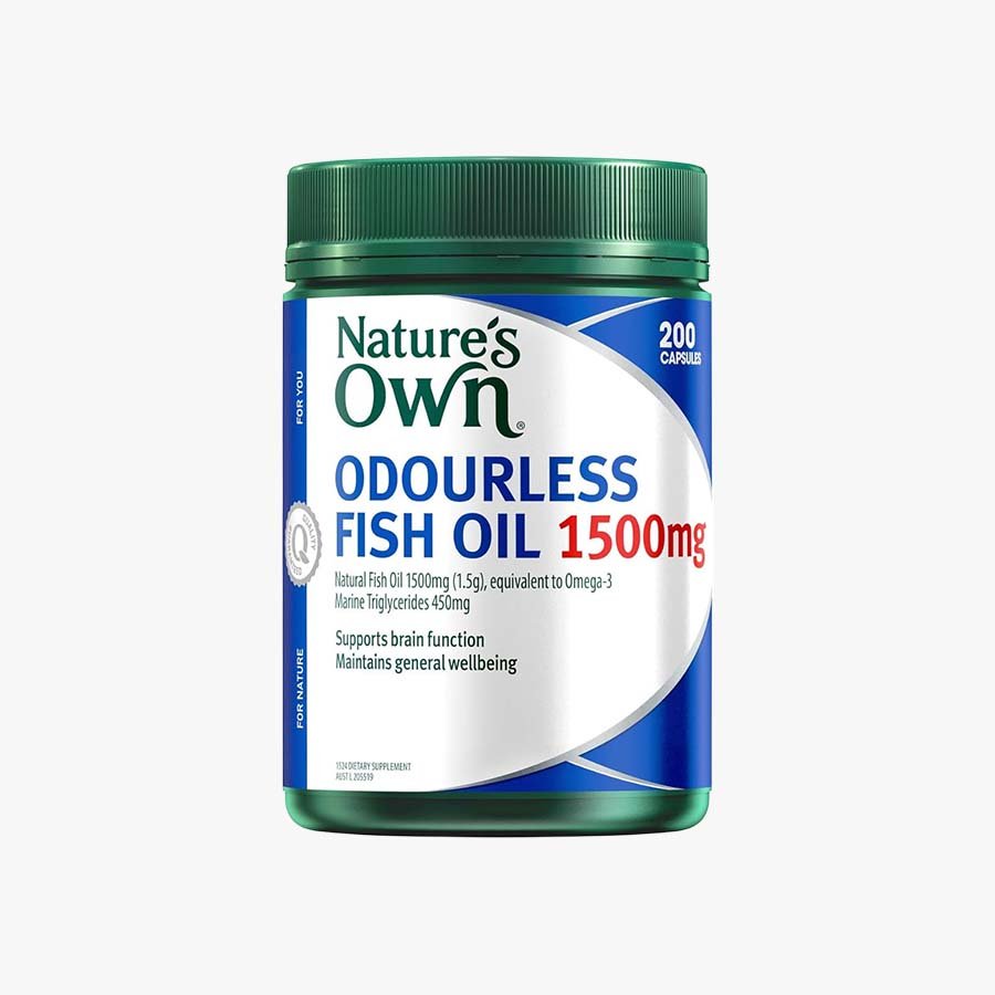 Nature’s Own Odourless Fish Oil 1500 mg is formulated with naturally derived Omega-3 fatty acids to support overall health and wellbeing. Omega-3 plays an important role in maintaining cardiovascular system health, supporting brain function, and helping preserve eye health. The odourless formulation helps reduce fish aftertaste, making it more comfortable for daily use.