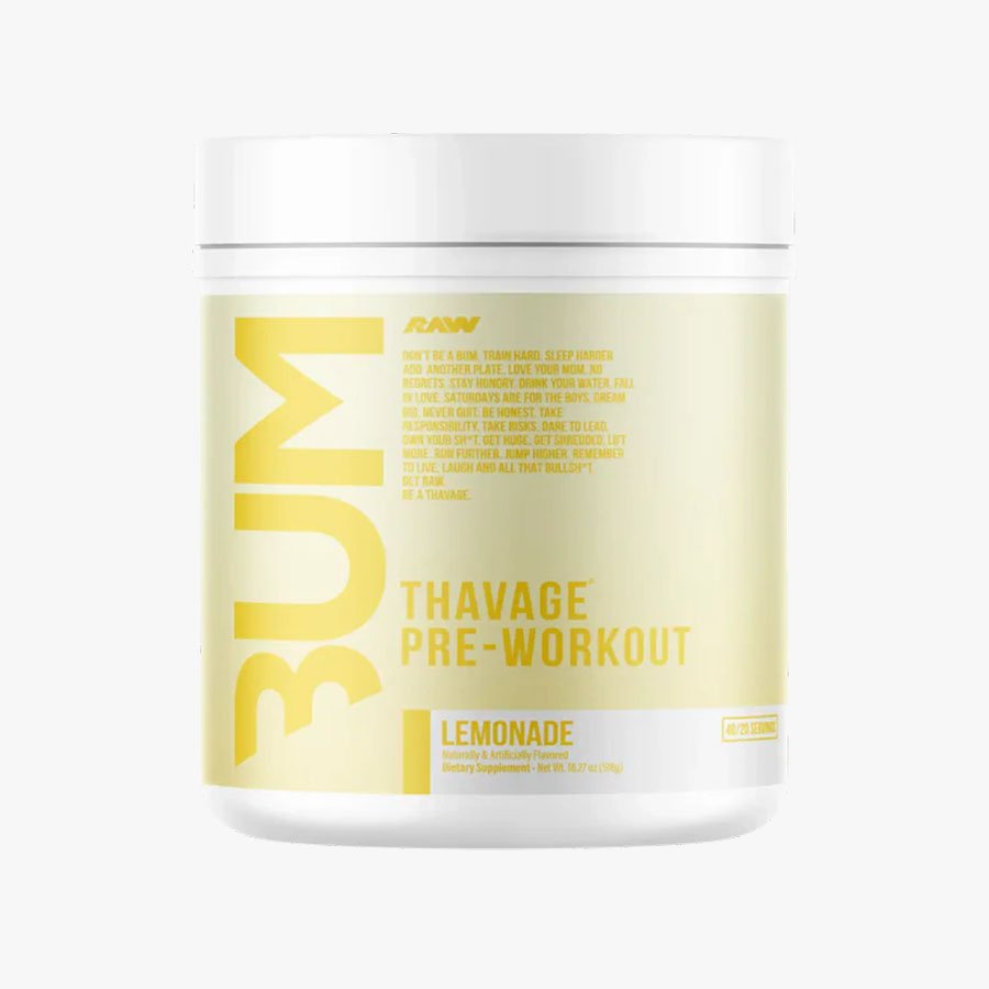 RAW Nutrition Thavage Pre-Workout is a powerful formula designed to boost energy, focus, and endurance for intense workouts. It helps improve strength, enhance muscle pumps, and support better training performance.